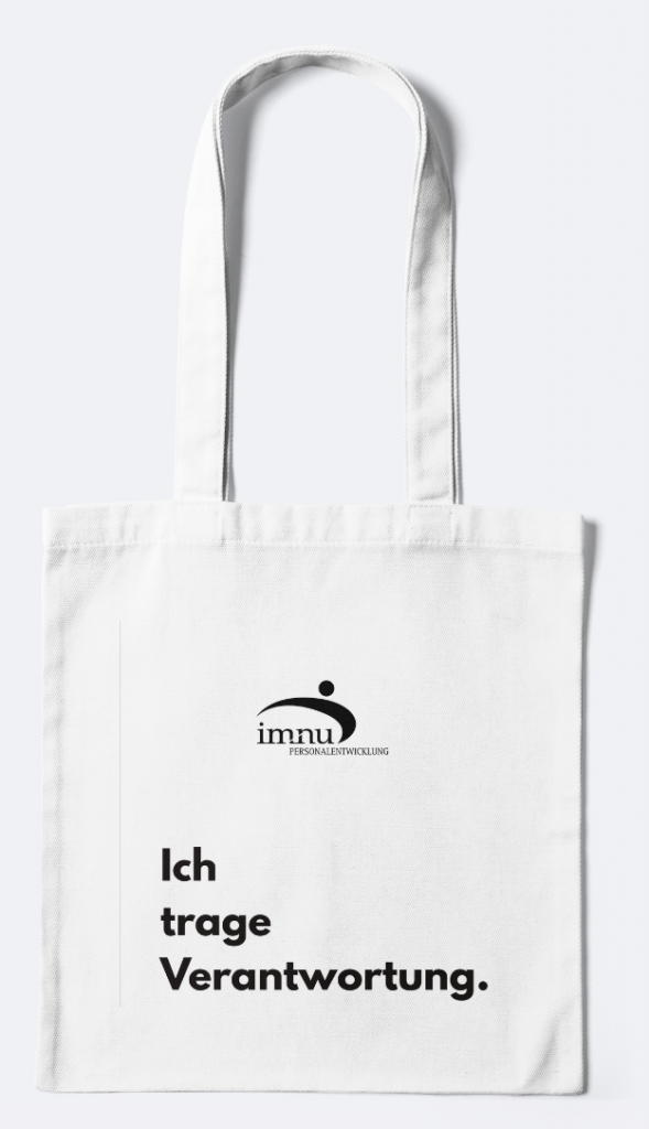 Diese Tasche aus 100% Bio Fairtrade-Baumwolle trägt verschiedene Definitionen von immu Personalentwicklung, die inspirieren und nachdenken lassen. Ein stilvoller Begleiter, der Führungskultur sichtbar macht – jeden Tag, an jedem Ort.